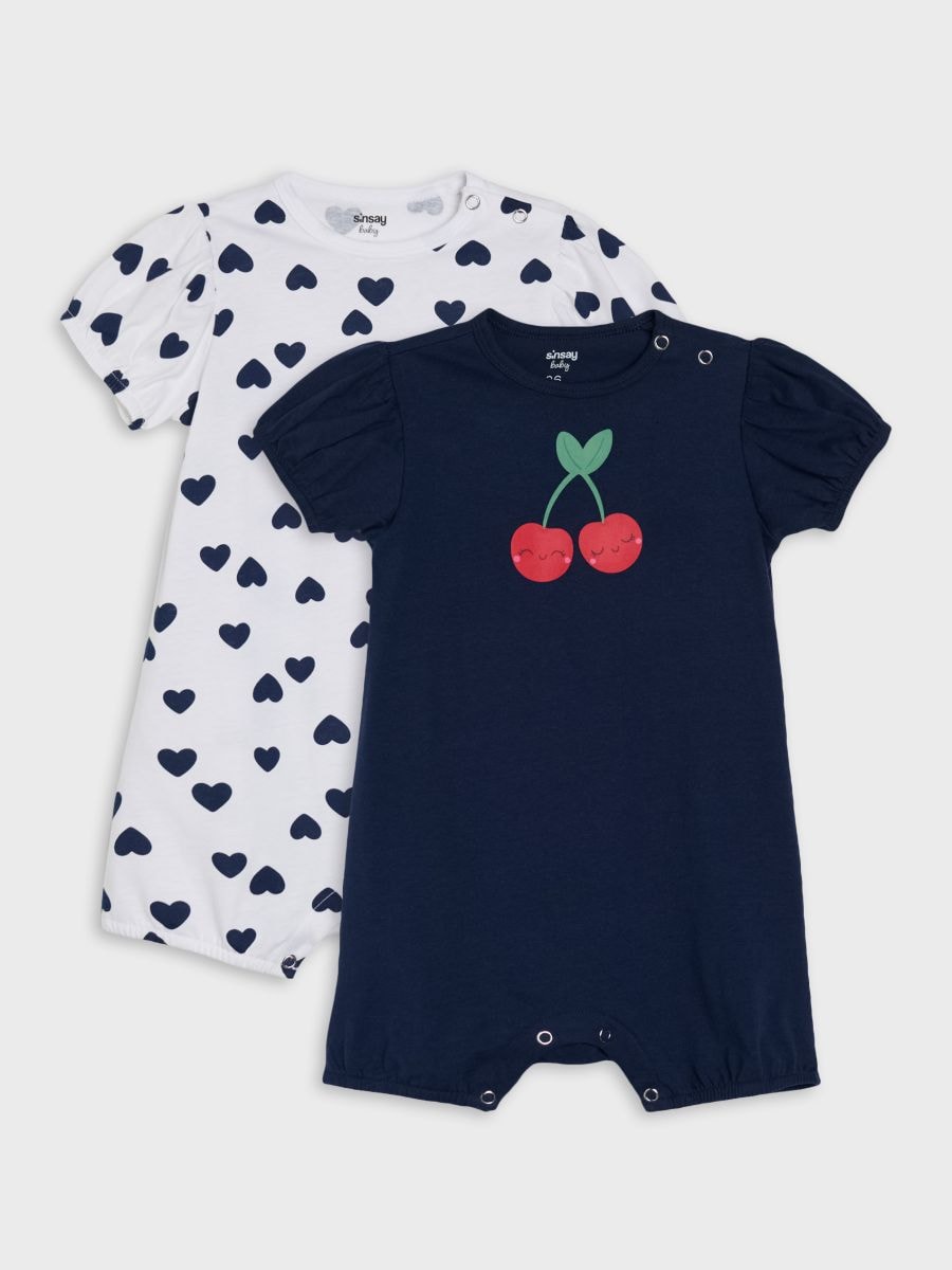 Puuvillased romperid puhvis varrukatega ja trükiga 2 tk