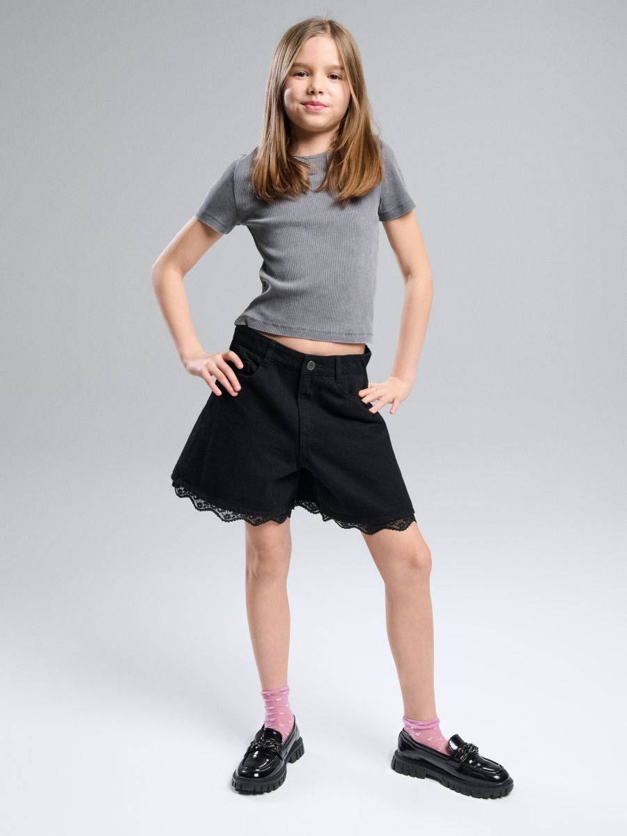 Puuvillased teksased pitsi ääristusega