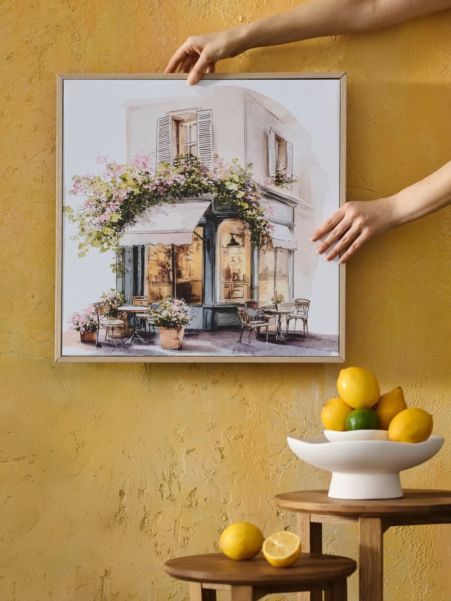 Raamitud seinapilt kohviku motiiviga