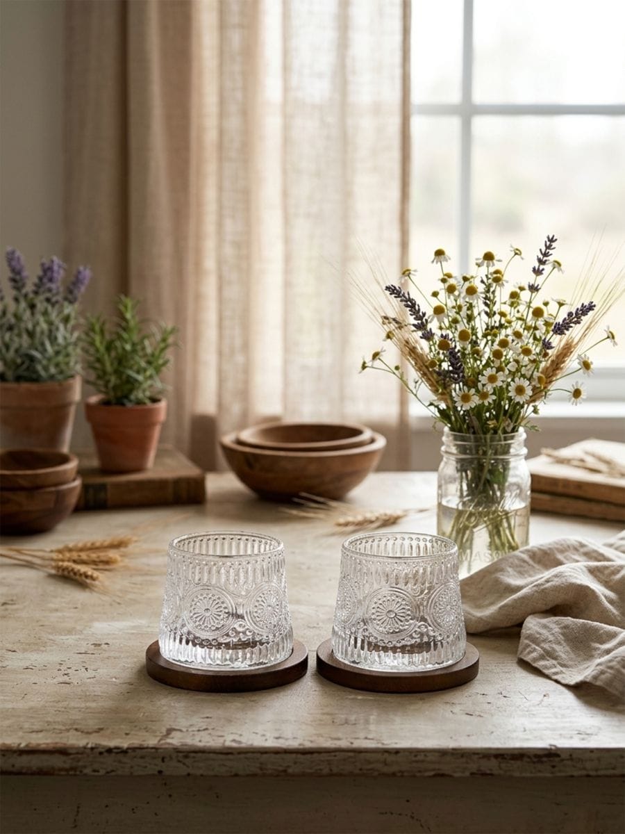 Reljeefse mustriga klaasid koos alustega 4 pack