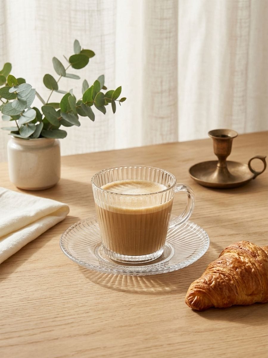 Ribiline klaasist tass ja alustass