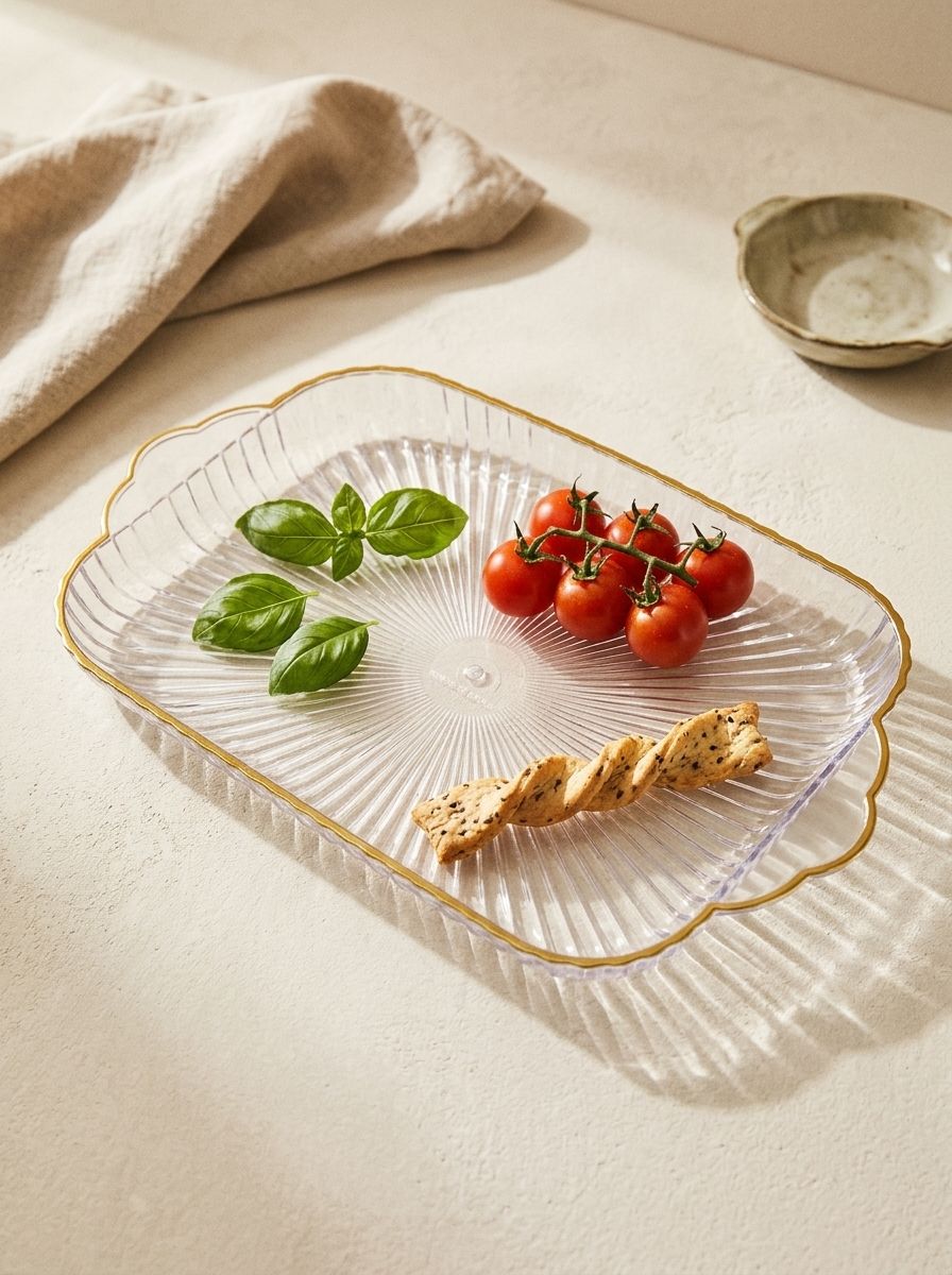 Serveerimisalus soonilise mustriga ja kuldse servaga