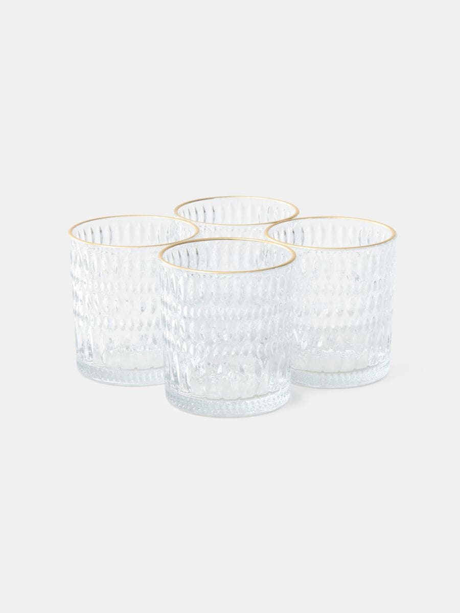 Struktuursete klaaside komplekt kuldse äärega 4 pack