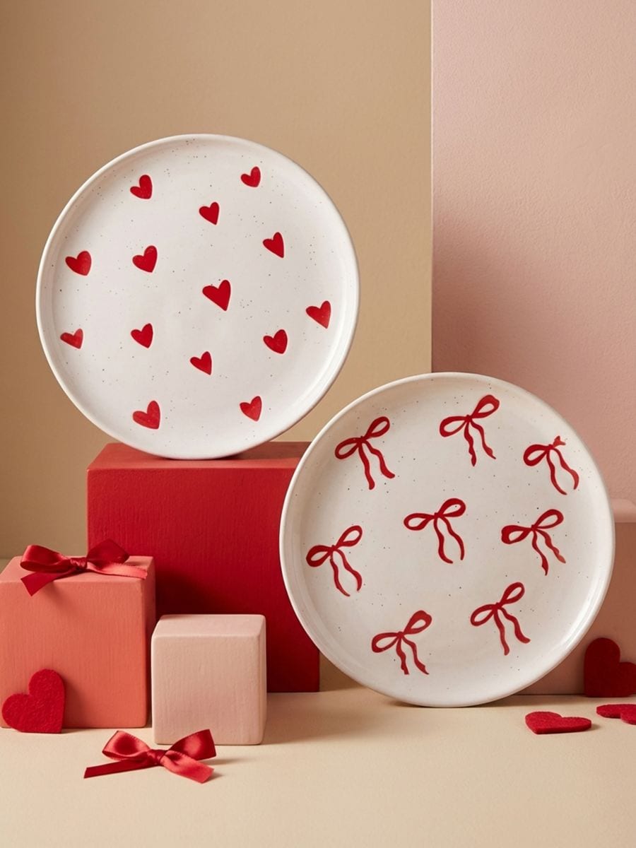 Taldrikute komplekt südame- ja lipsumustriga, 2 tk