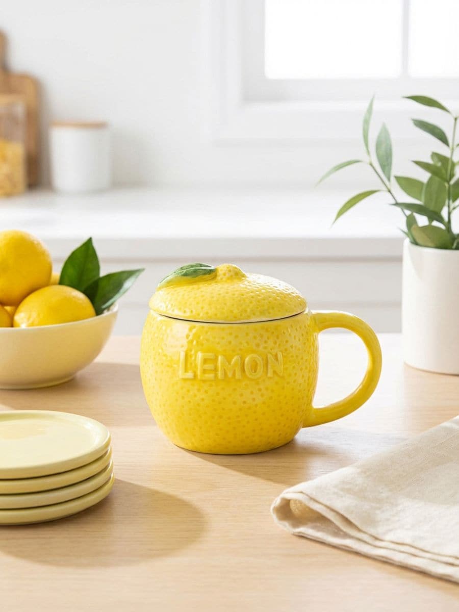Tass sidruni motiiviga ja kaanega