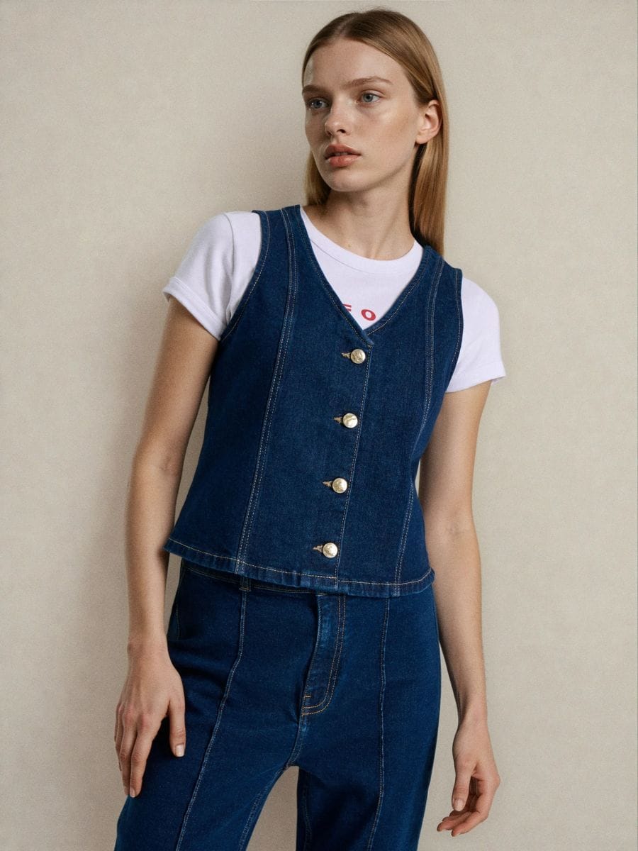 Teksavest dekoratiivsete nööpidega