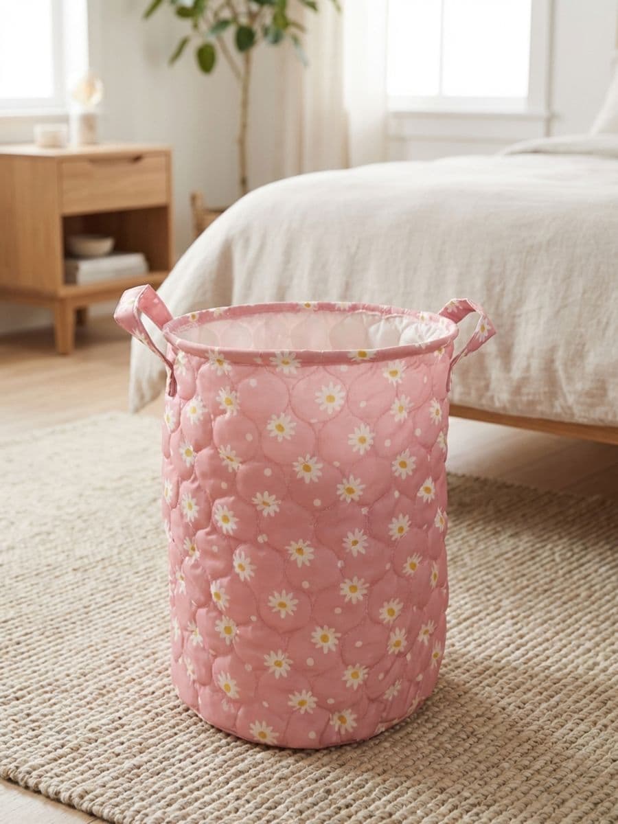 Tikitud hoiukorv lillemustriga