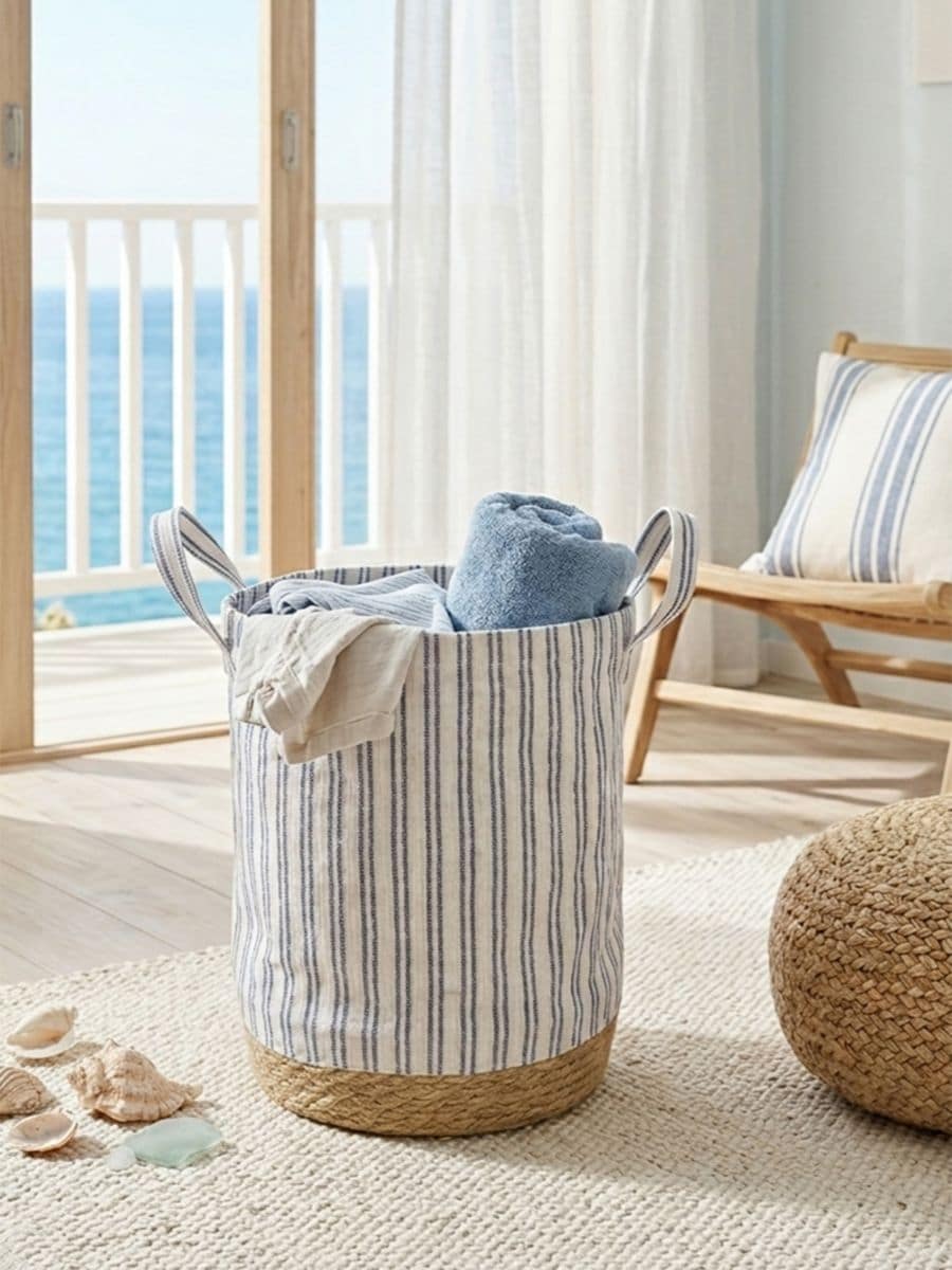 Triibuline hoiukorv punutud elementidega