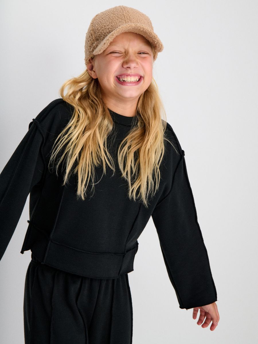 Triibuline pusa ümmarguse kaelusega ja fliisvoodriga