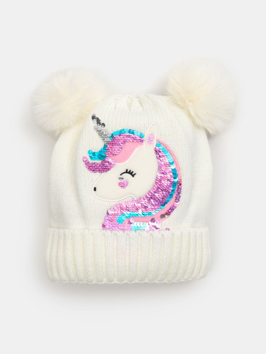 Tutimüts pööratavate litrite ja ükssarviku motiiviga