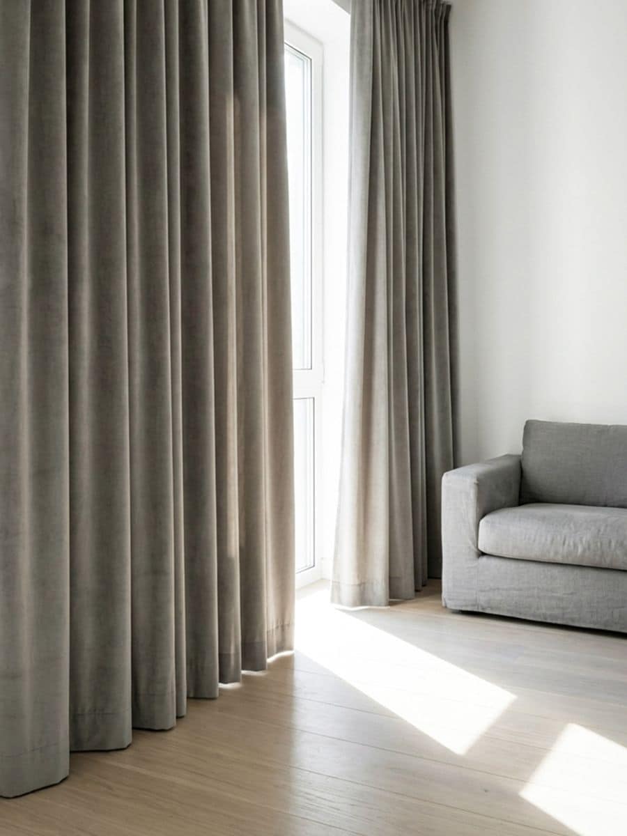 Ühevärviline kardin kardinapaelaga ja veluurse viimistlusega