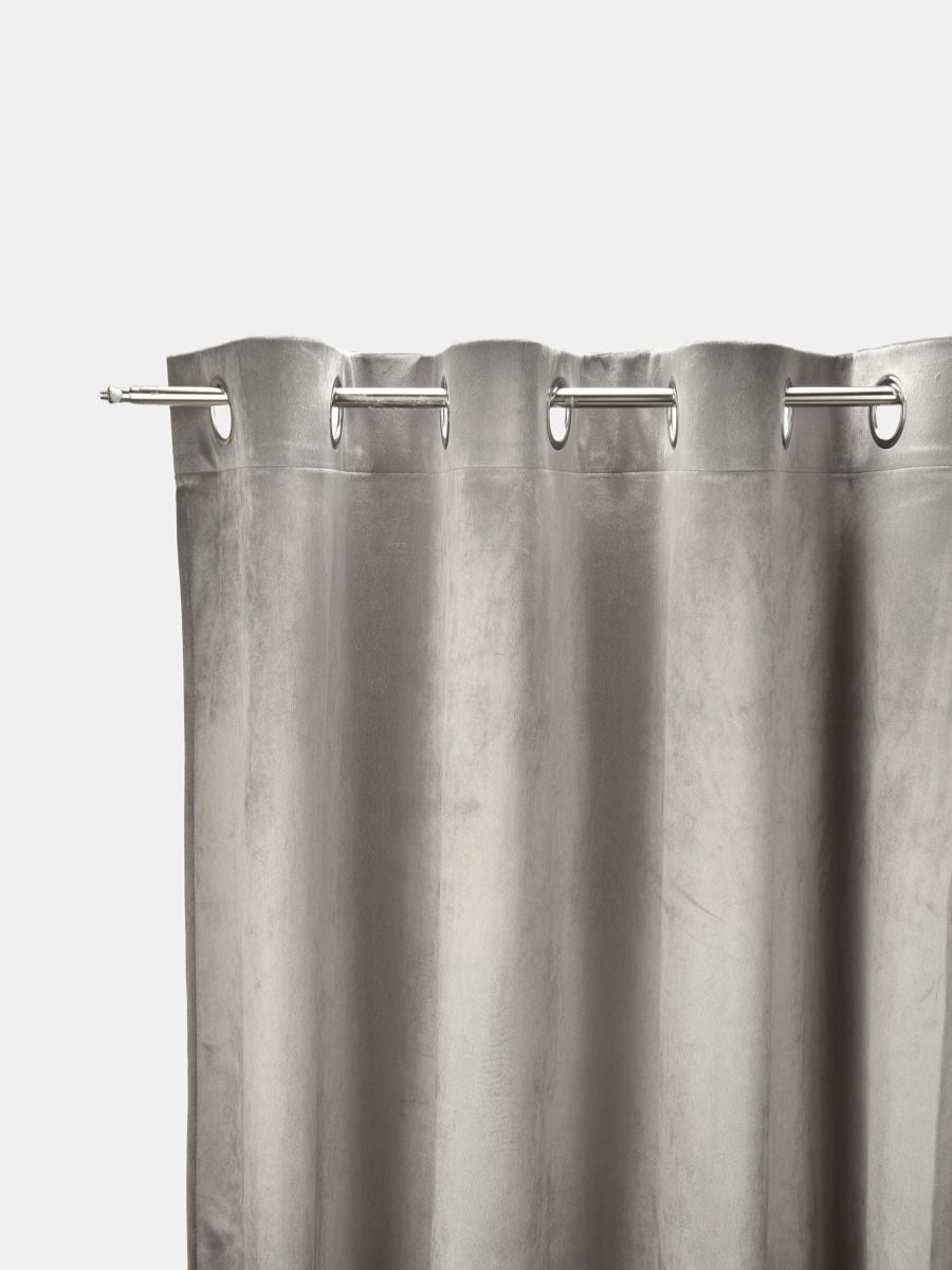 Ühevärviline kardin rõngastega ja veluurse viimistlusega