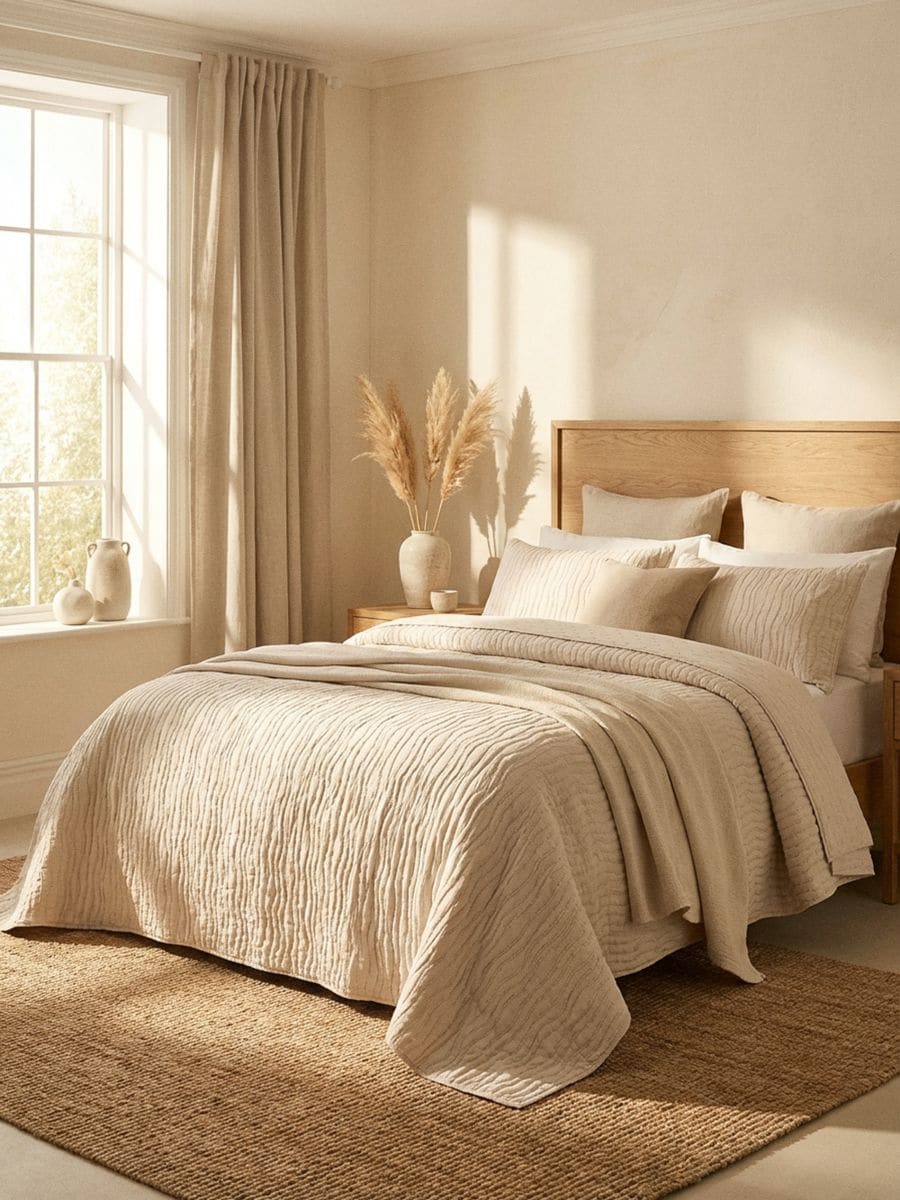 Ühevärviline tepitud voodikate