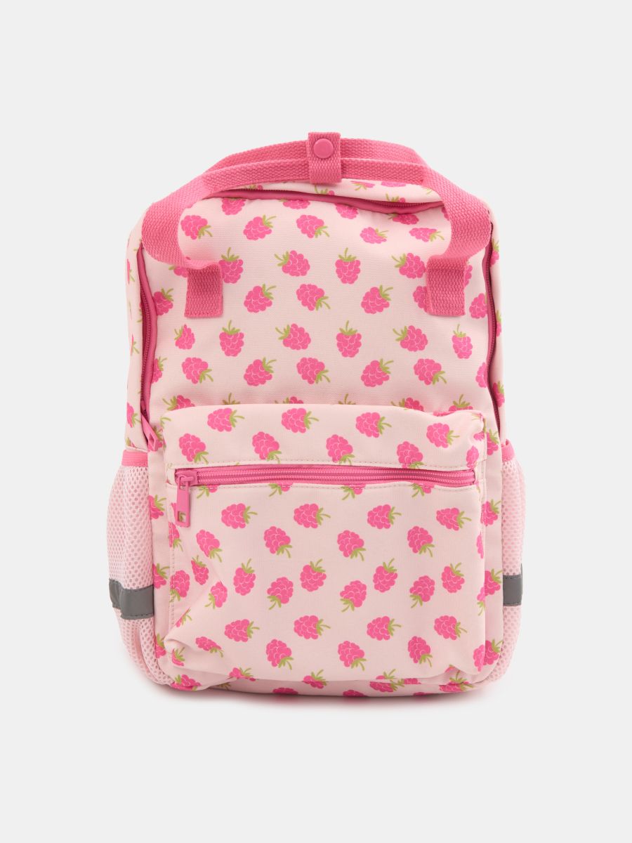 Vaarikamustriga seljakott helkurelementidega