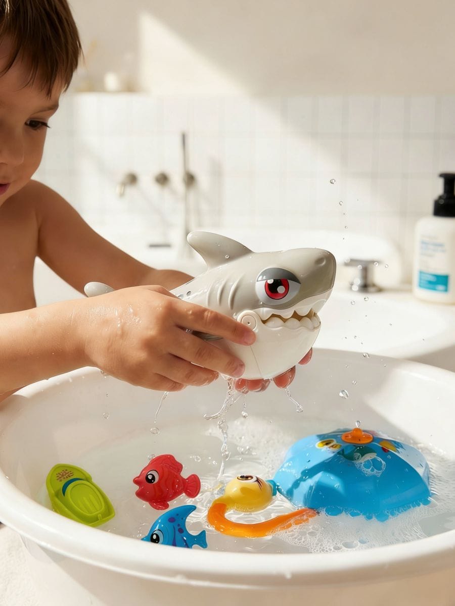 Vannimänguasjade komplekt haiga, kalade ja paadiga