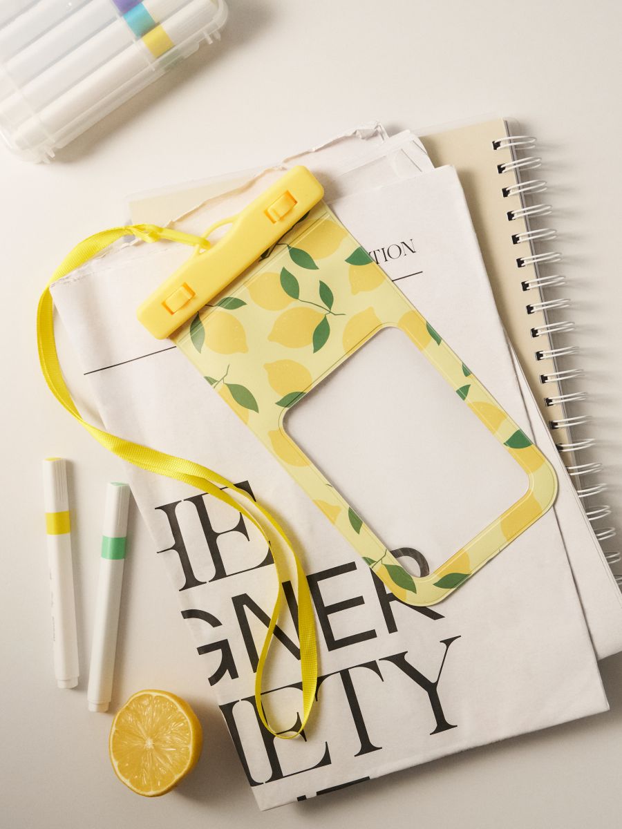 Veekindel telefoniümbris sidrunimotiiviga ja kaelapaelaga