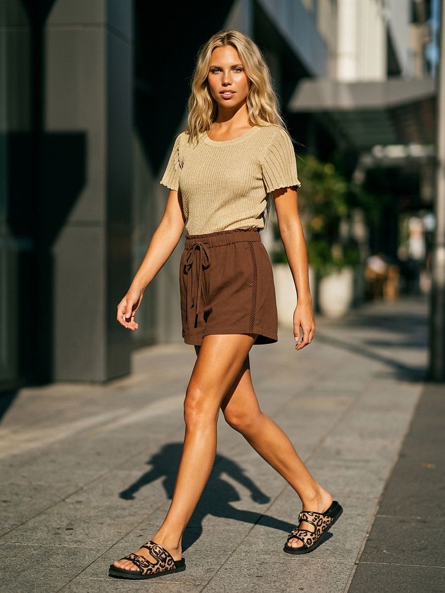 Viskoosiga šortsid dekoratiivse tikandiga külgedel