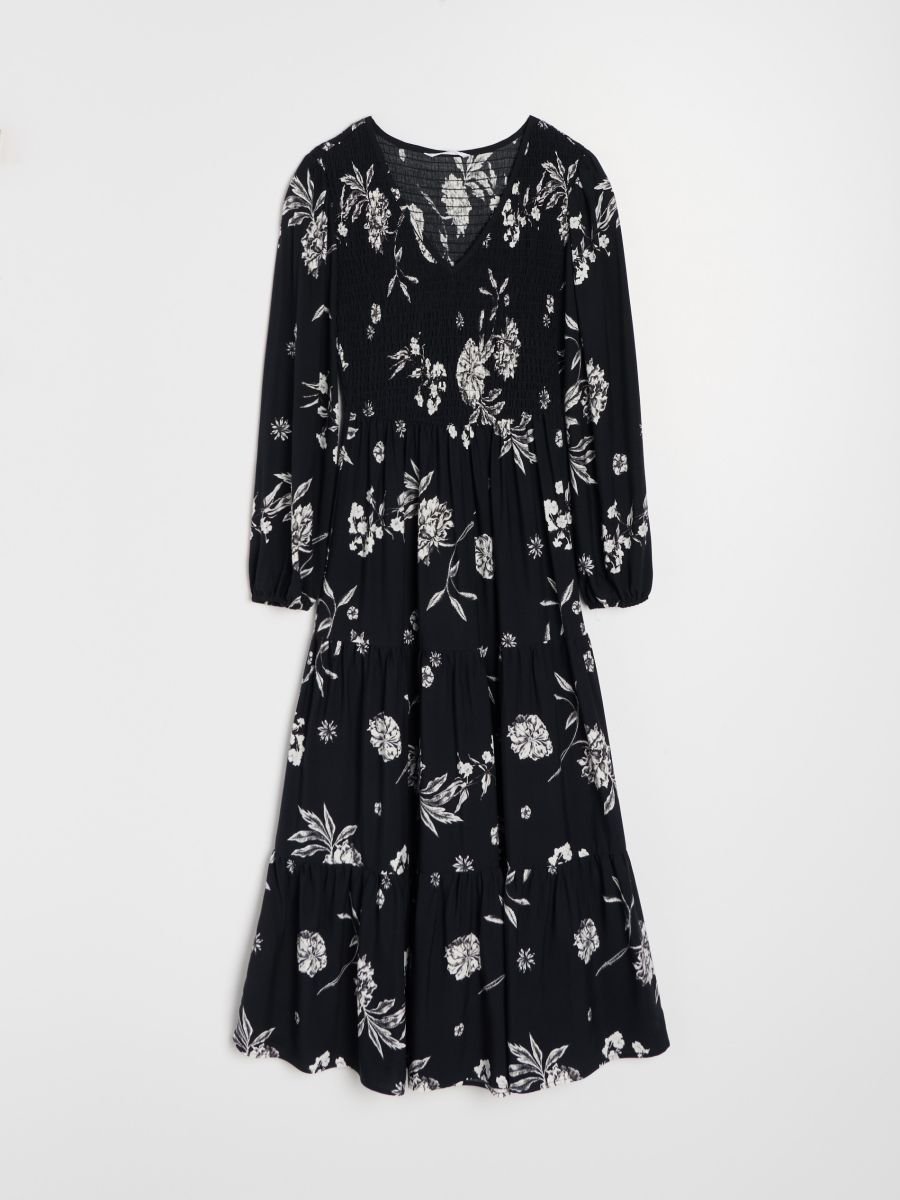 Viskoosist kihilise efektiga midi kleit lillemustriga