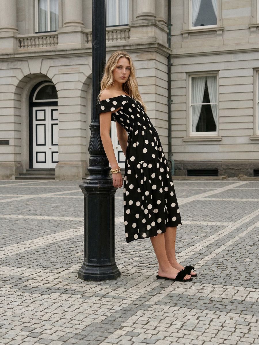 Viskoosist midi kleit täpilise mustriga