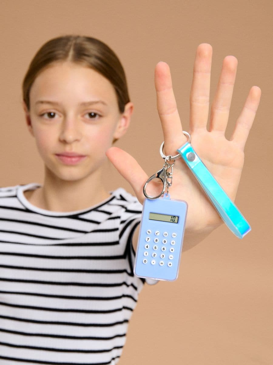 Võtmehoidja kalkulaatori ja tagaküljel olev labürindiga