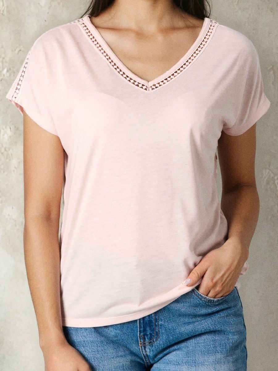 Μπλούζα από βισκόζη με δαντελωτά ένθετα