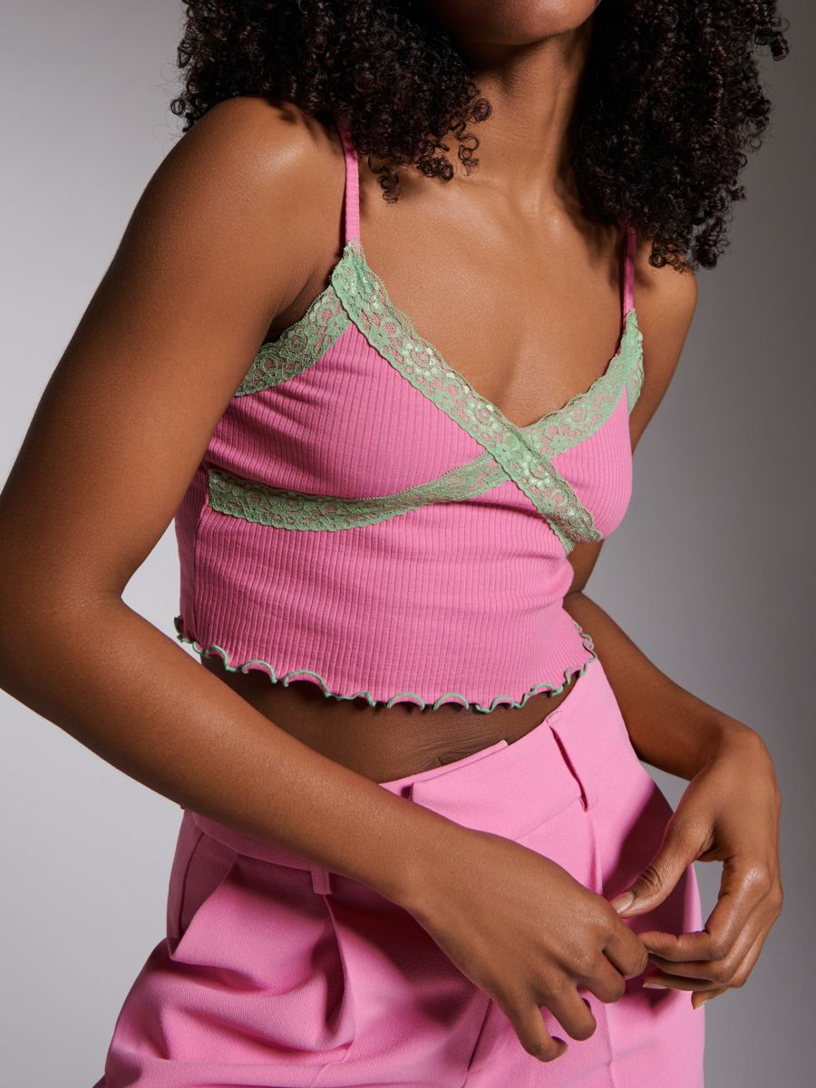 Μπλούζα με τιράντες και δαντελένιο τελείωμα