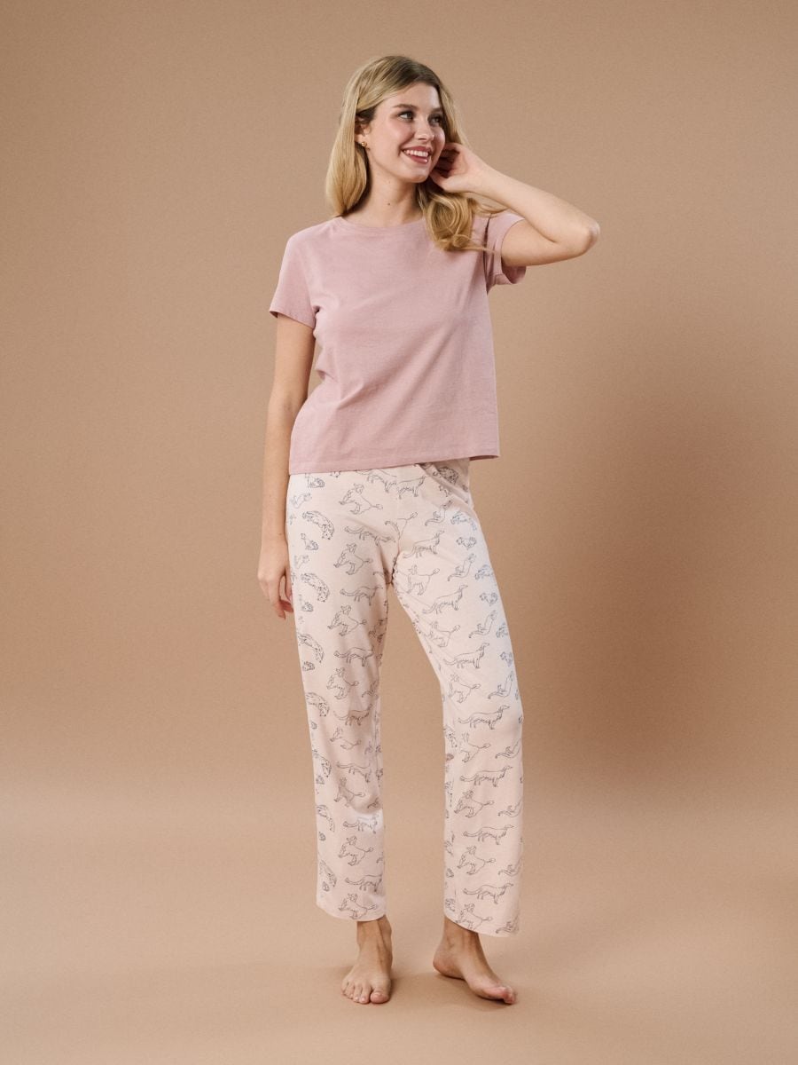 Δίχρωμη βαμβακερή πιτζάμα με στάμπα σκύλων