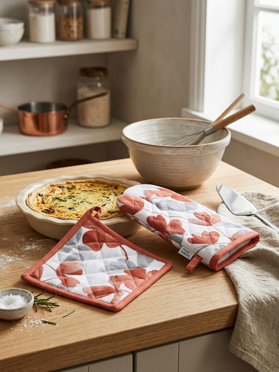 Γάντι φούρνου και πιάστρα με φυτικό μοτίβο