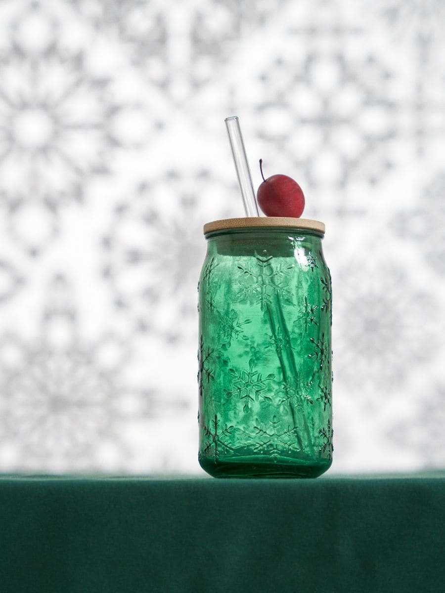 Ημιδιάφανη κούπα με καλαμάκι με χειμερινό μοτίβο