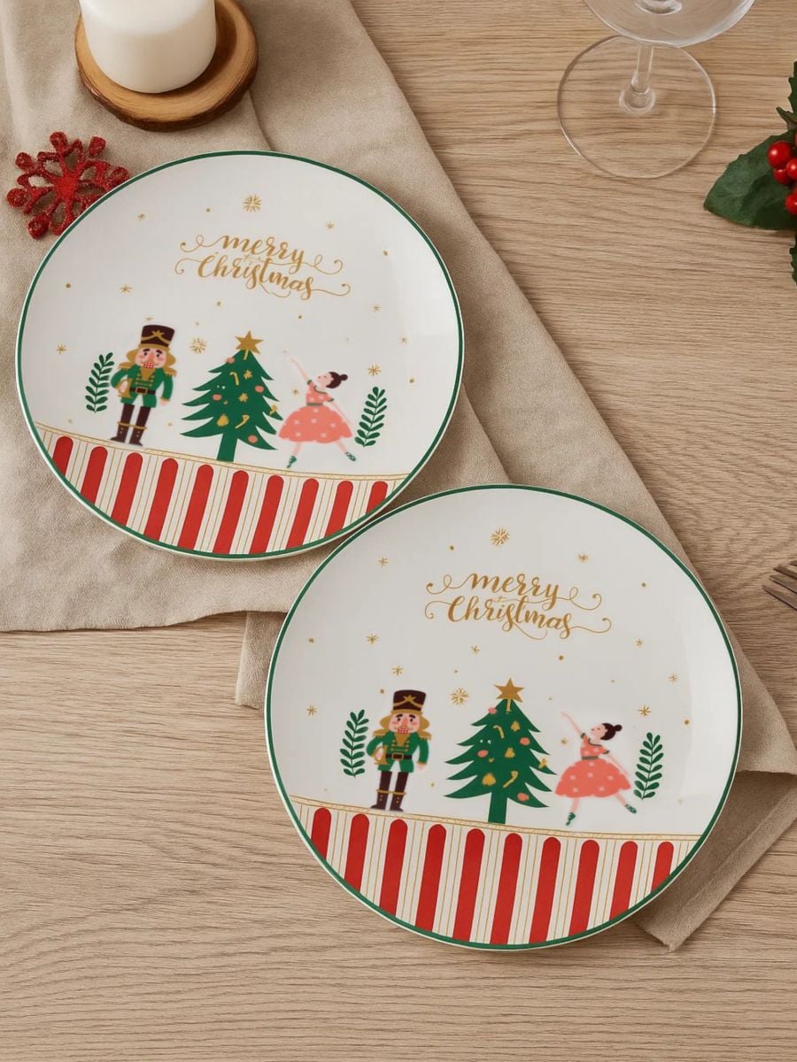 Κεραμικά χριστουγεννιάτικα πιάτα με μοτίβο Καρυοθραύστη και μπαλαρίνας, σετ 2 τεμαχίων