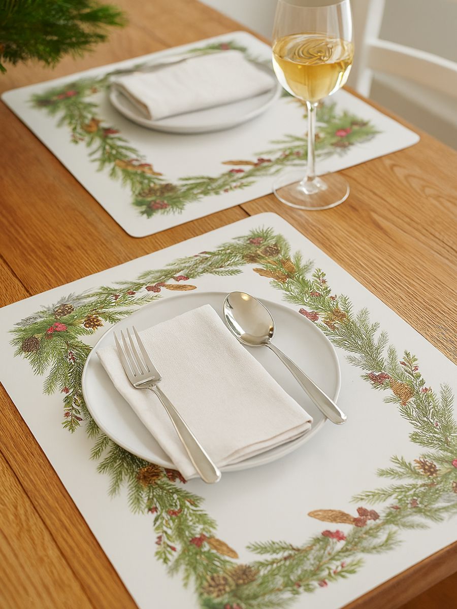 Χριστουγεννιάτικα σουπλά με μοτίβο κλαδιών και κουκουνάρι 2 τεμ.
