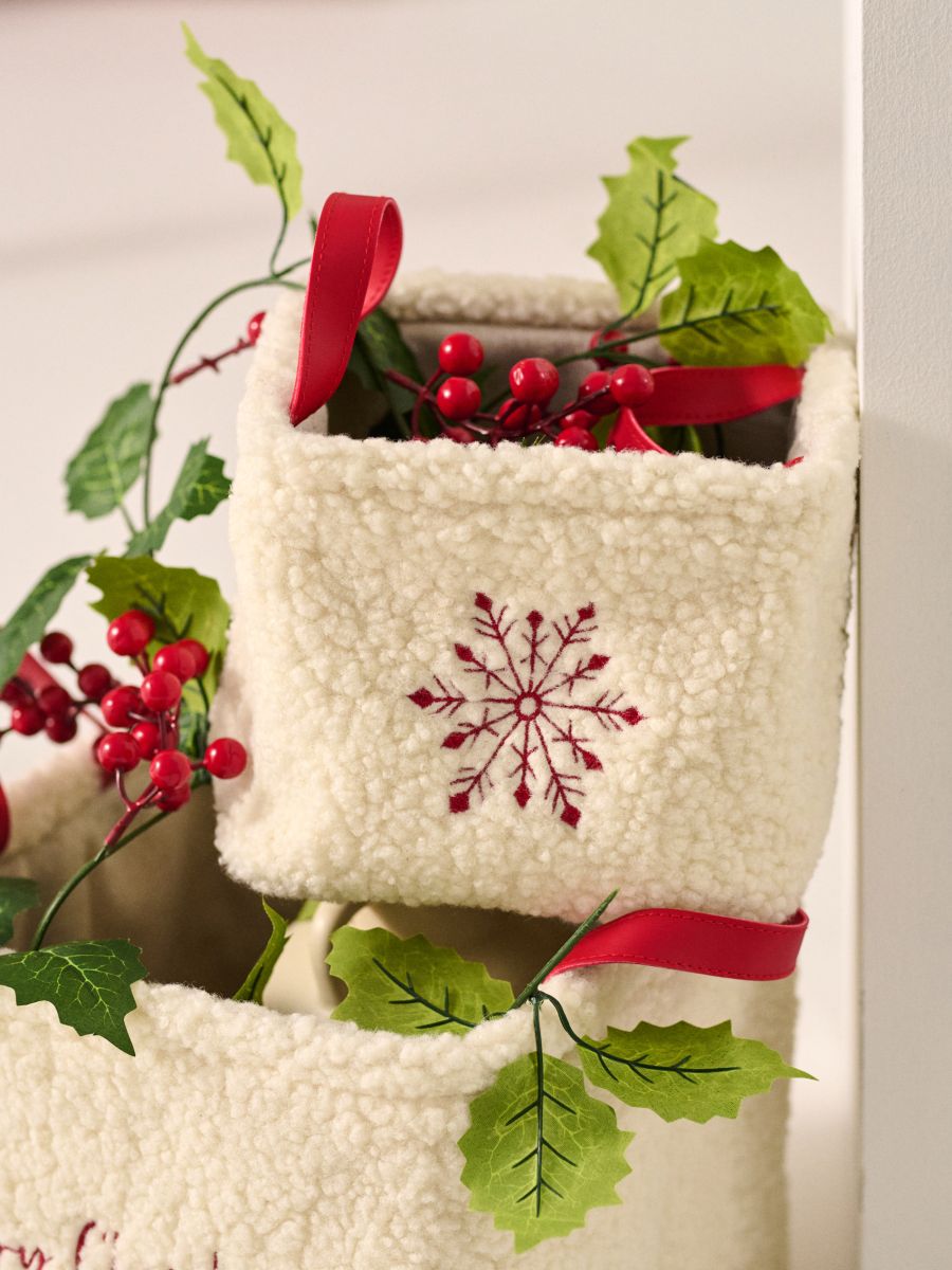 Χριστουγεννιάτικο καλάθι αποθήκευσης με χερούλια και σχέδιο νιφάδας χιονιού