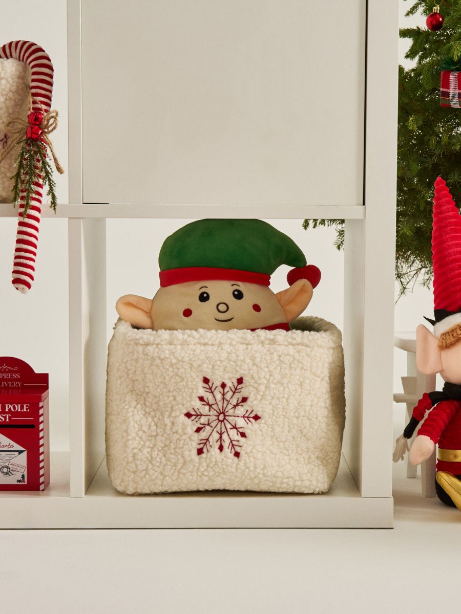 Χριστουγεννιάτικο καλάθι αποθήκευσης με χερούλια και σχέδιο νιφάδας χιονιού