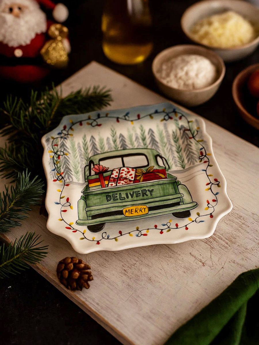 Χριστουγεννιάτικο πιάτο με μοτίβο αυτοκινήτου με δώρα