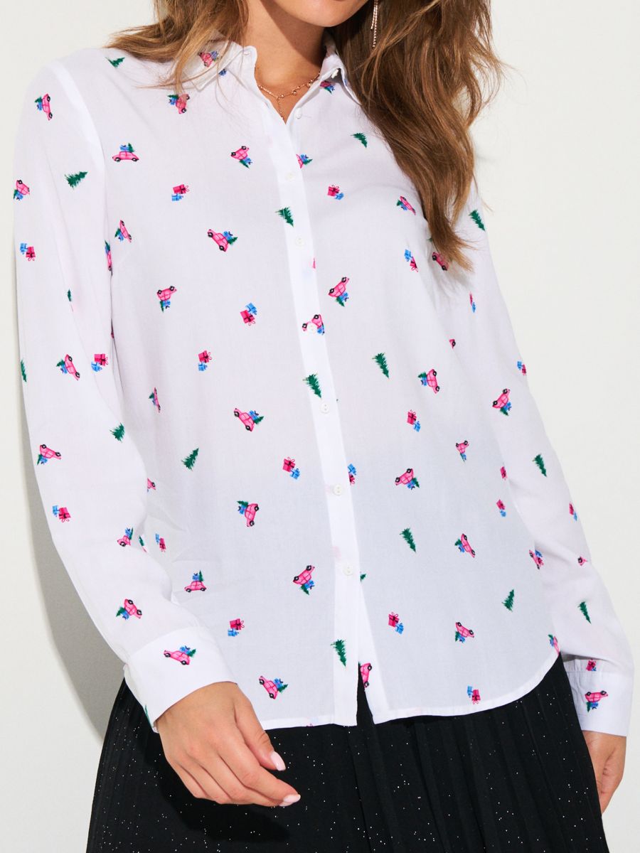 : Χριστουγεννιάτικο πουκάμισο με στάμπα αυτοκινήτων, δώρων και χριστουγεννιάτικων δέντρων