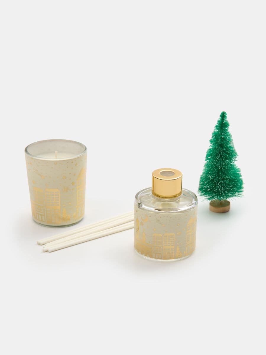 Χριστουγεννιάτικο σετ: αρωματικό κερί, αποσμητικό χώρου και μικρό χριστουγεννιάτικο δέντρο