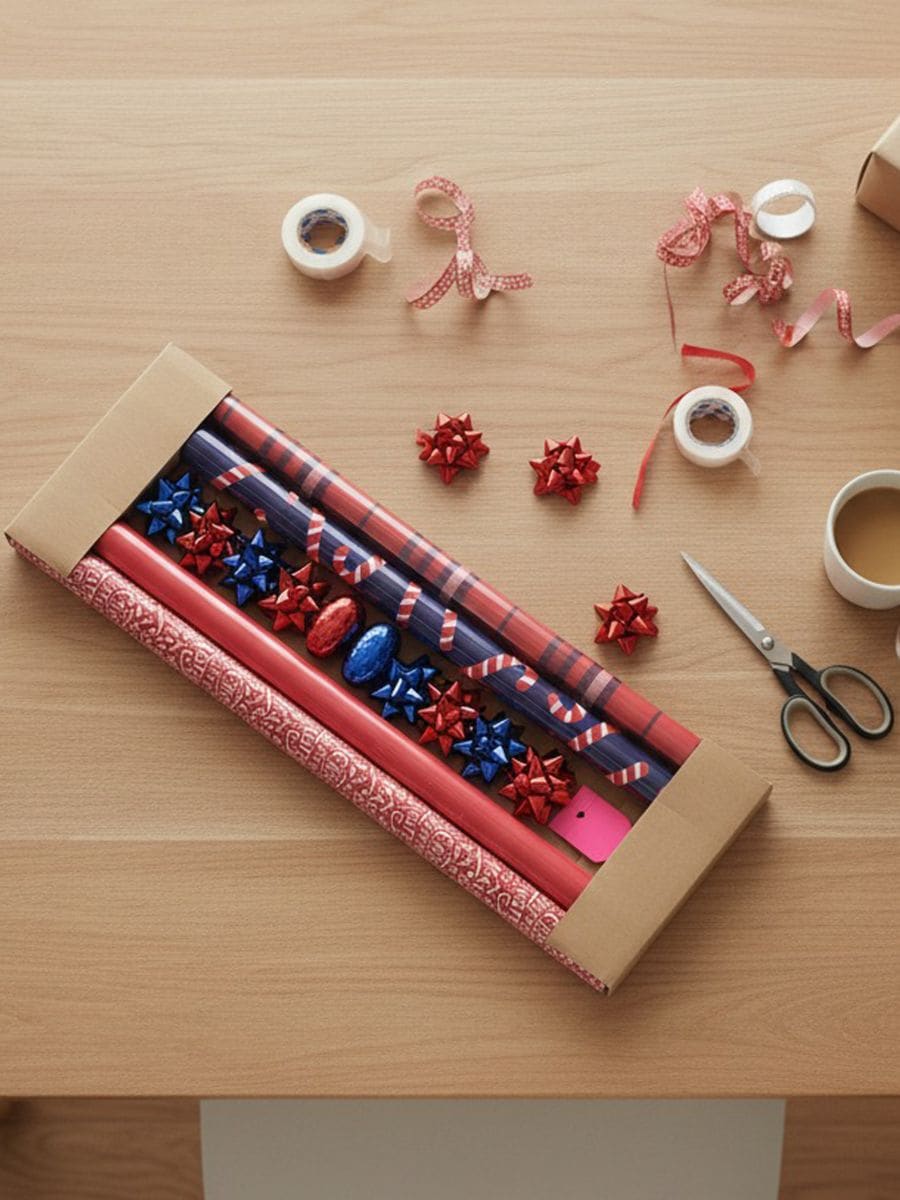 Χριστουγεννιάτικο σετ χαρτιών περιτυλίγματος και διακοσμήσεων