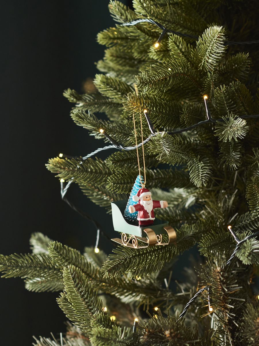 Χριστουγεννιάτικο στολίδι με φιγούρα του Άγιου Βασίλη και δέντρο σε έλκηθρο