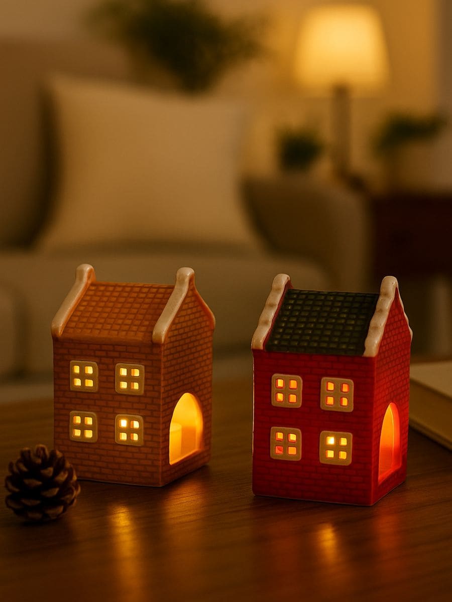 Κηροπήγια σε σχήμα σπιτιών, σετ 2 τεμαχίων