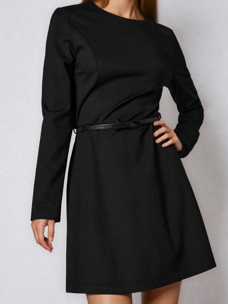 Κλασικό μίνι φόρεμα με ζώνη και βισκόζη
