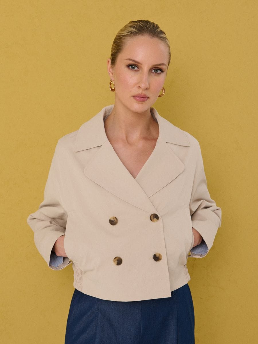 Κοντό διπλόπετο trench παλτό με διακοσμητικά κουμπιά