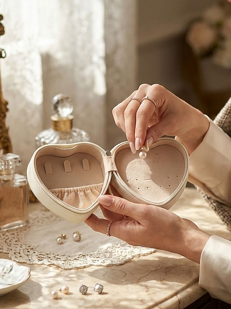 Κοσμηματοθήκη σε σχήμα καρδιάς με θήκες και φερμουάρ