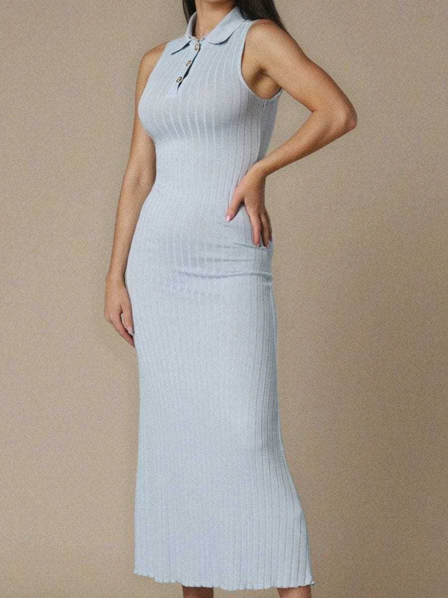 Μακρύ πλεκτό φόρεμα χωρίς μανίκια με γιακά