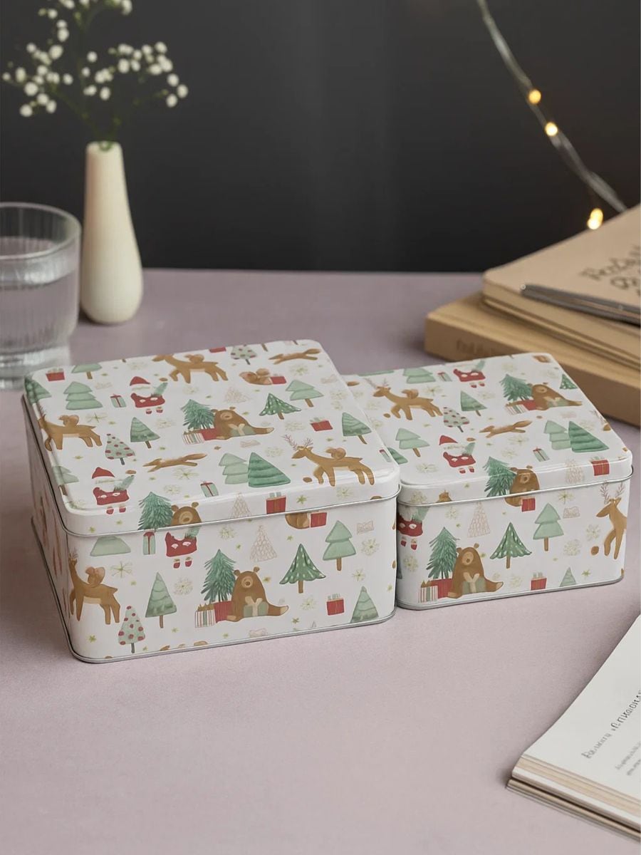 Μεταλλικά δοχεία φαγητού με χριστουγεννιάτικο μοτίβο, συσκευασία 2 τεμαχίων
