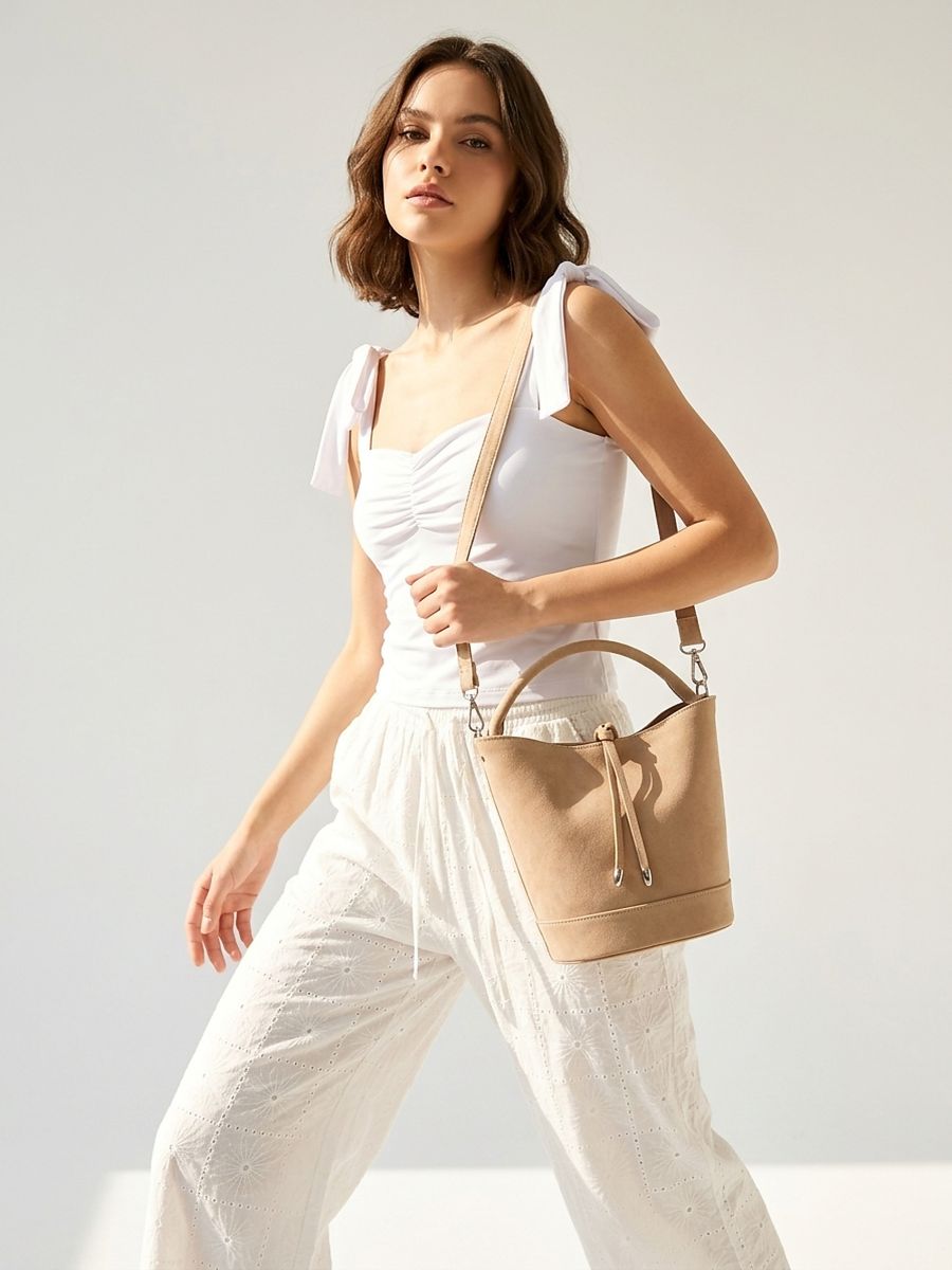 Μικρή τσάντα hobo με μακρύ λουράκι από συνθετικό σουέτ