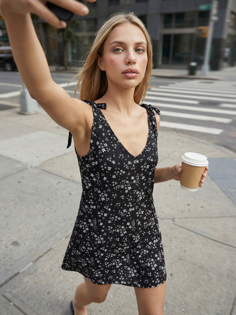 Μίνι φόρεμα από βισκόζη με φλοράλ σχέδιο