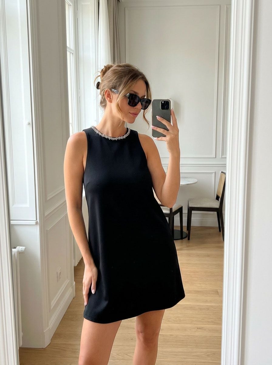 Μίνι φόρεμα με διακοσμητικά στρας στο ντεκολτέ