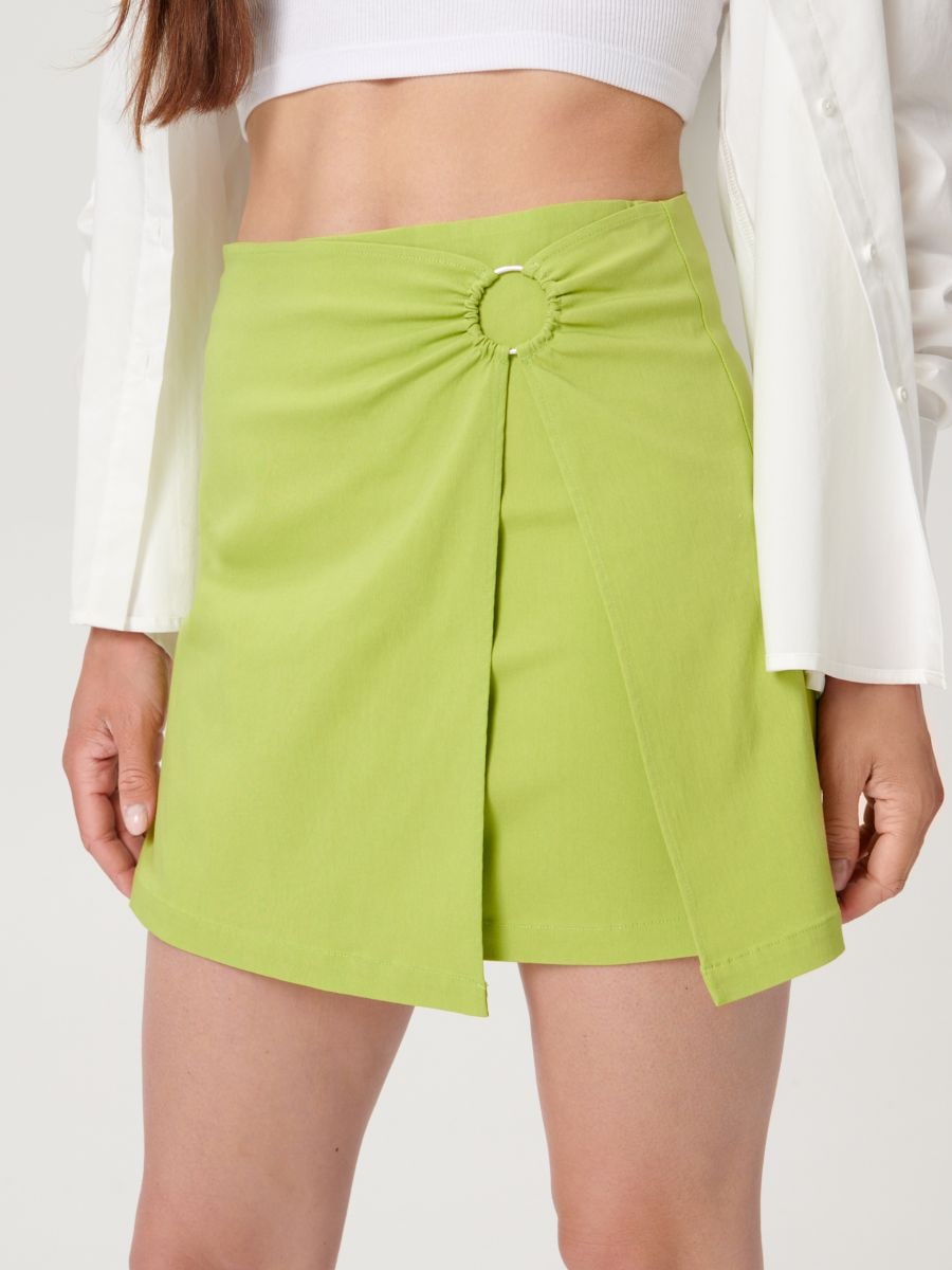 Μίνι φούστα με διακοσμητικό κρίκο και σκίσιμο μπροστά