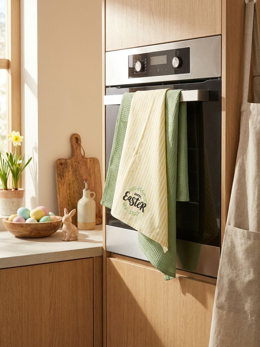 Πασχαλινές πετσέτες κουζίνας με την επιγραφή «Happy Easter», σετ 2 τεμ.