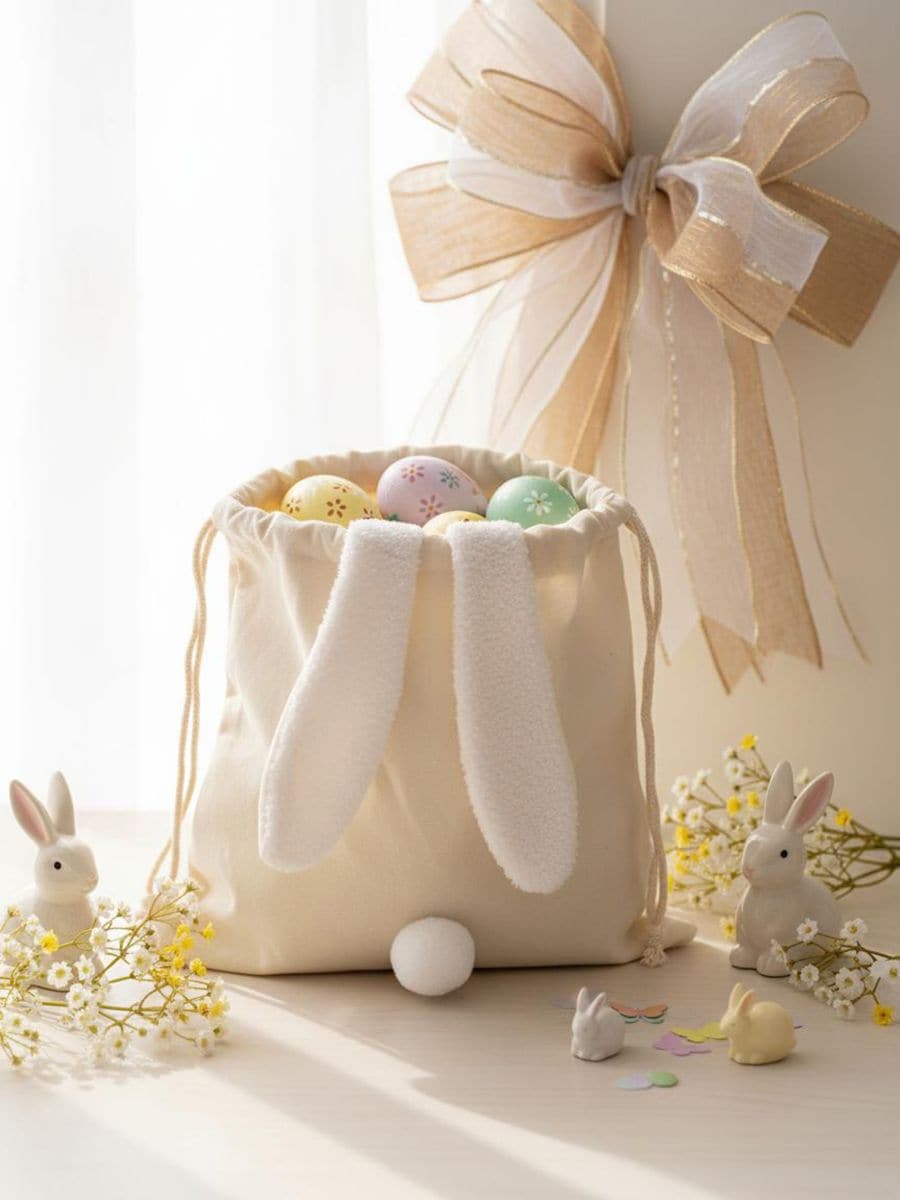 Πασχαλινό πουγκί με σχέδιο κουνελάκι και κορδόνι
